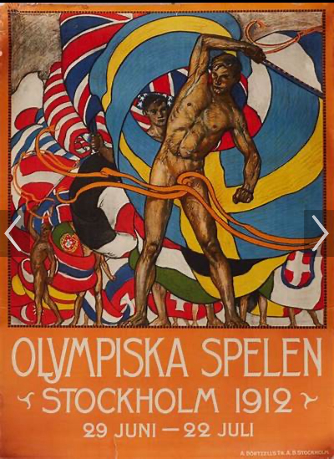 Förra sommaren besökte jag Fotografiska museet i Stockholm. Man hade en utställning över Strindbergs självporträtt. Man hade även en utställning över berömda ögonblick, med mera, i olika olympiska spel genom tiderna som ett tema inför OS i London. Jag fastnade framför affischen för OS i Stockholm 1912.