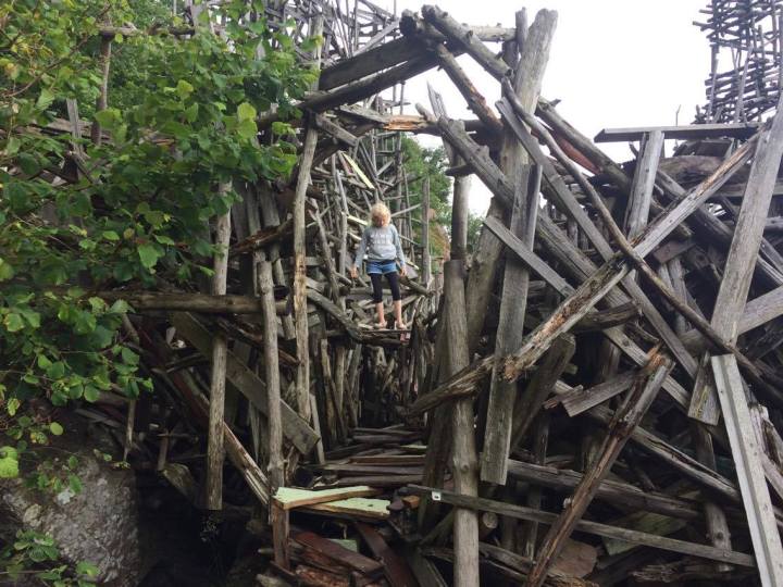 Sedan var det dags för att besöka barnens mors moster, och några av hennes kusiner med tillhörande familjer i Viken utanför Helsingborg. Jag har förvisso upplevt det förr men det tål att upprepas: den skånska gästfriheten är spektakulär. Middagar hemma, middagar i Vikens Strandbar gjorde morgnarnas havsnära träningsrundor såväl njutbara som avgörande. Som jag saknat att springa nära havet. Lars Vilks konstverk i Kullabygden, Nimis, är välkänt. Även om jag är kluven till konstnären så är verket hisnande. Karln har samlat drivved och spikat upp sedan 1980! Särskilt gillar jag hans kommentar till att någon försökte bränna ner det i höstas: det var väl lite väl brutal konstkritik.