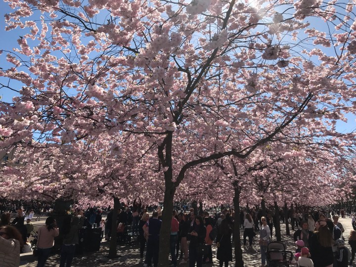 Jag själv vet inte riktigt vad jag ska svara (eftersom jag har munnen full av snittar och skumpa) – så jag säger att körsbärsblom i Kungsträdgården, kyrktornens klang, folkvimlet, Vasamuseet och Skansen sammantaget kanske inte innebär hysterisk lyxkonsumtion.