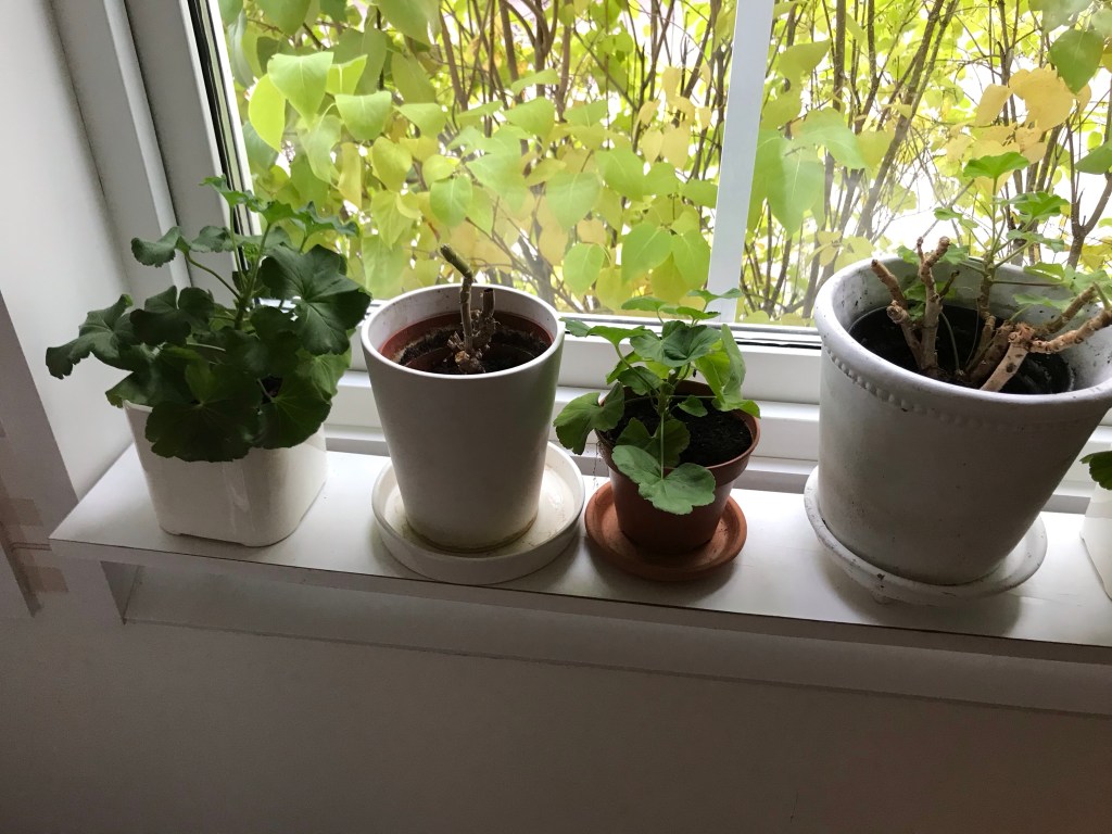 Jag roar mig med att försöka hålla liv i mina pelargoner. Det är så fridfullt och vilsamt att pyssla med vackra, lugna, saker. Jag planterade nyligen om växterna och konstaterade samtidigt för mig själv att alla utom en tycks ha överlevt. Dotter 1, som hörde mig, replikerade: Precis som vår familj, pappa.