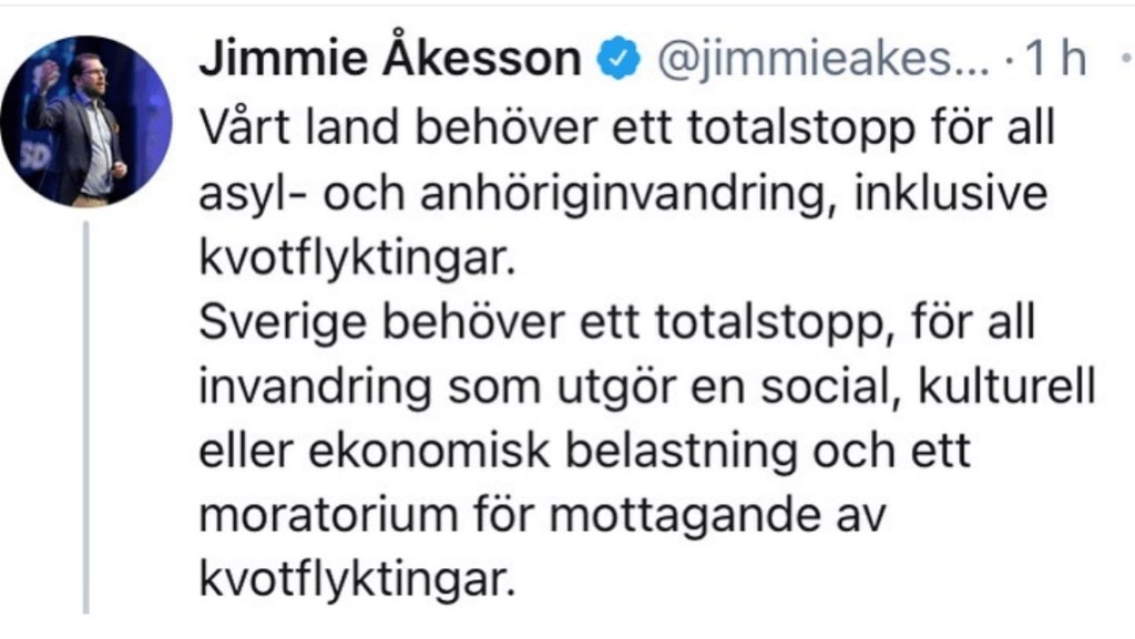 Det är i grunden ett rasistiskt parti som längtar tillbaka till ett Sverige som aldrig funnits. Partiet utgör en säkerhetsrisk på grund av kopplingar till Ryssland och andra auktoritära regimer. Respekten för etablerade fri- och rättigheter är svag.