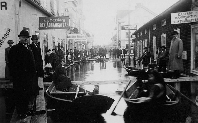 På bilden nedan syns några av stadens handlare, och klientel, anno 1916. Alltså mitt under det stora kriget. Även om mycket var annorlunda då var också mycket lika. Människor gjorde sina prioriteringar och stressade på. Det fanns ingen demokrati 1916. Inte heller någon pandemi. Annars var det väl på det stora hela tämligen lika.