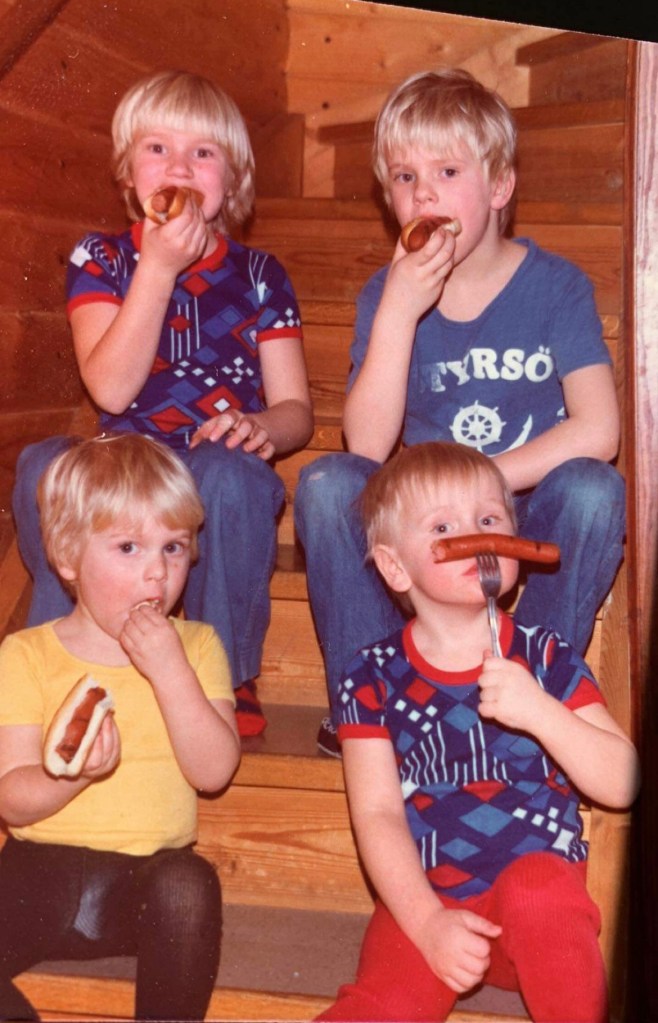 När jag betraktar det gamla fotot slås jag, rätt i magen, av att det fortfarande saknas två av oss. Och av att ingen av dessa två blev gamla nog. En må ursäkta. Jag blir lätt lite nostalgisk så här års. Jag kan inte hjälpa det. Särskilt när jag tänker på mina egna moderlösa barn slår det mig. Det känns som ett privilegium att ha fått växa upp som jag. Helt, rent, tryggt och kärleksfullt. På så vis också rikt. Det vill jag även för mina flickor.