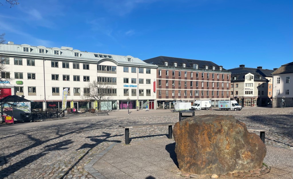 Jag håller mitt hov vid speakers corner på torget. Speakers corner. En blinkning till såväl originalet i Hyde Park som antikens torg. Det var på agora, forum, man röstade, dömde och handlade. Vem som helst får tala och det står alla och en var fritt att inte lyssna. Lite som i våra dagars demokrati. Jonas Lennerthson, förre ordföranden i kultur och fritidsnämnden, tillika lärare, cyklade förbi. Han stannande till och berättade att just den här stenen tillkom under hans tid i nämnden och är tänkt att påminna om landets sista uppror 1743: Stora daldansen. Då stod de på torget, upprorsmännen. Så lärde sig också magistern (om stenens ursprung) något nytt denna dag.