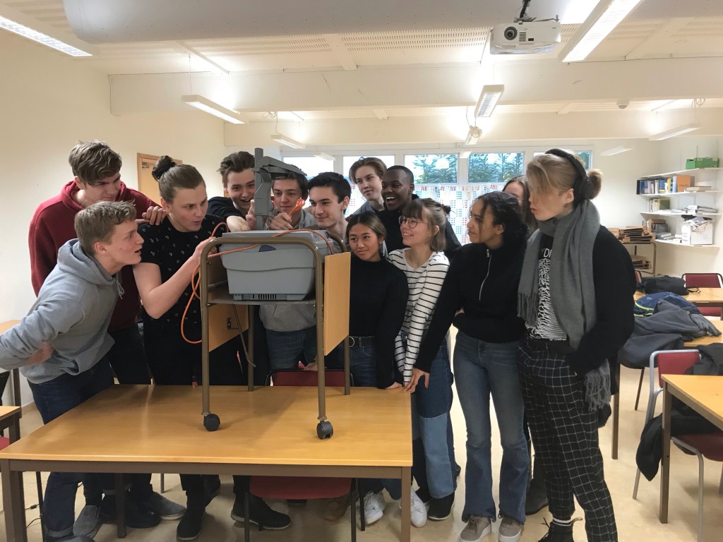 Efter en stunds sorl och småprat blir det plötsligt knäpptyst och alla arbetar med något. Några elever viskar om sin uppgift. När det är någon minut kvar på lektionen kommer läraren in och säger att han vill ge lite tips till de som jobbar med A-uppgift och frågar om det är ok? Ja svarar eleverna och läraren ger lite instruktioner.