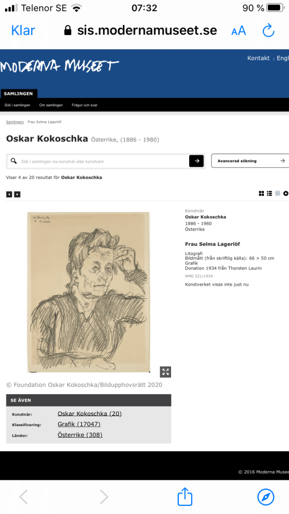 Villan det refereras till ovan, Villavägen 34-36, köpte hon 1907 och ägde till sin död. Huset är liksom alla hennes bostäder (inte Centralpalatset som helhet, men våningen är inte kvar) numera rivna. Läs gärna Örjan Hamrins berättelse om det. I Falun skrev Selma flera av sina mest framstående verk.