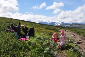 Det ät lustigt det där med gener. Hon fick fjällen med modersmjölken. I dag går Dotter 1 runt och snackar med alla och söker kontakt. Dotter 2 sitter still och njuter av sin nyponsoppa, tittar på fjället och njuter av naturen.